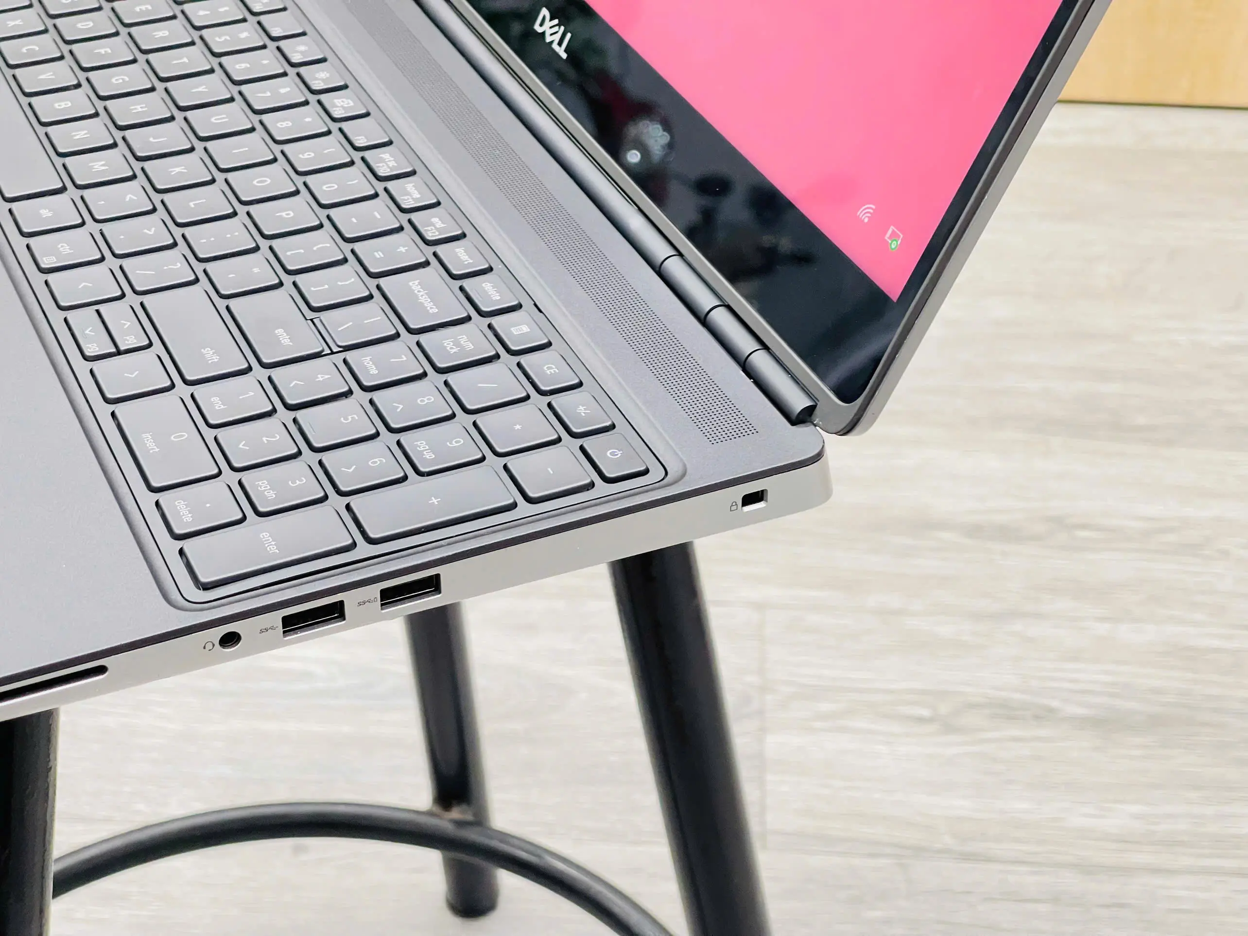 - Bên trái: 1 cổng SD Card Reader, 1 jack tai nghe 3.5mm, 2 cổng USB 3.2 Gen 1 và Cable Lock
