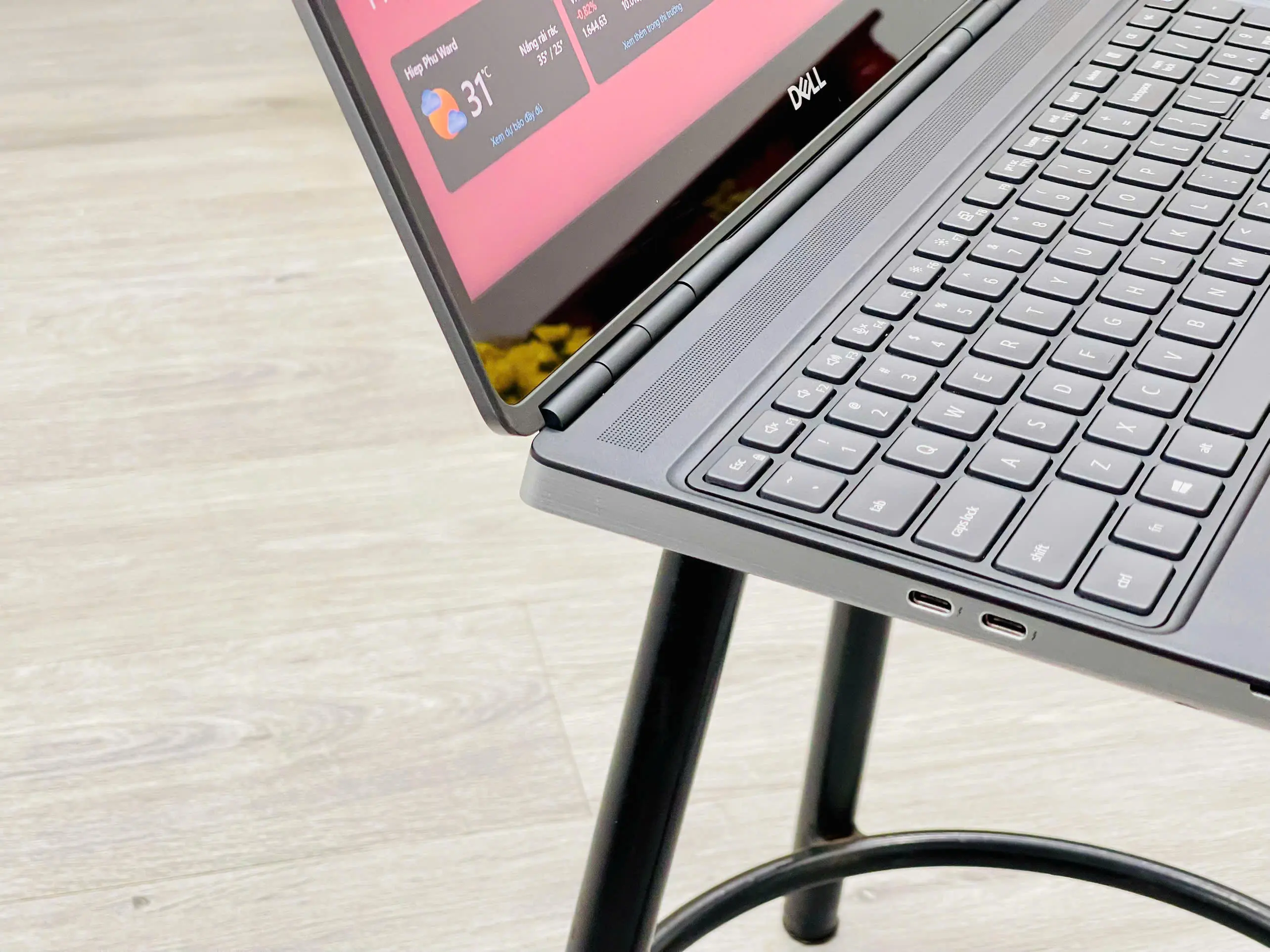 Không chỉ mỏng và đẹp hơn so với các phiên bản tiền nhiệm trước đó, Precision 7550 cũng cứng cáp. Phần bản lề của Dell Precision 7550 được thiết kế chắc chắn, tổng thể máy được thiết kế theo ngôn ngữ phẳng nên việc mở máy, đóng máy vô cùng dễ dàng và an tâm không lo bị gãy bản lề.