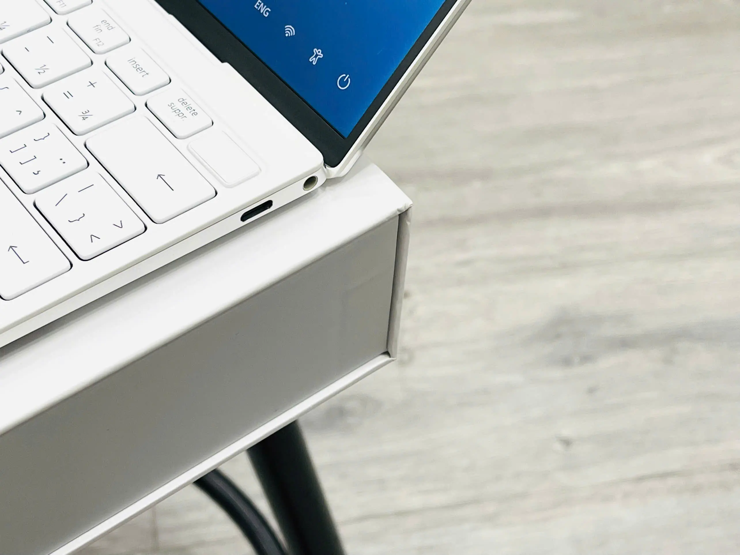 Cổng kết nối và pin của Dell XPS 13 9310 (Frost White)